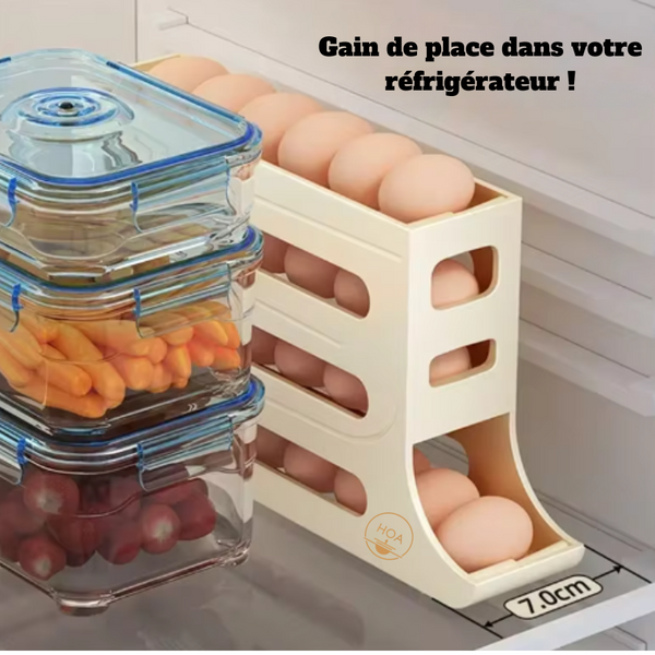 Imaginez un réfrigérateur organisé où vos œufs roulent toujours à portée de main. Simplifiez votre quotidien avec notre distributeur pratique et gagnez en espace et en efficacité.