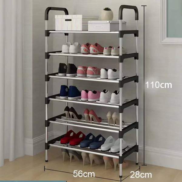 l'Étagère à Chaussures en Métal de 6 rangés convient parfaitement aux petits espaces grâce à son design compact. Elle aide à garder les chaussures organisées et accessibles, réduit le désordre dans les espaces de vie et assure une longue durée de vie grâce à sa construction métallique. Elle supporte jusqu'à 20 paires de Chaussures.