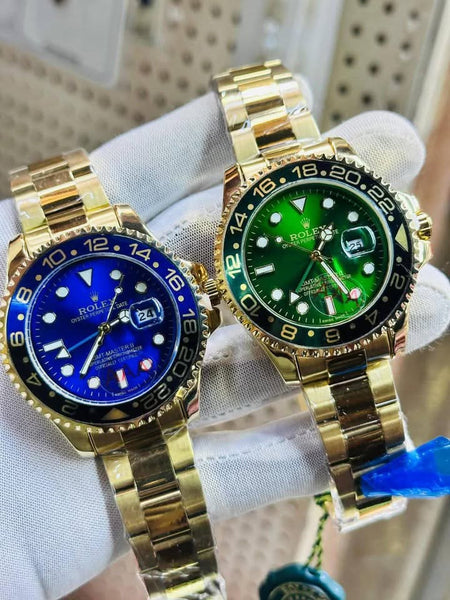 Un design doré inspiré de la mythique Rolex GMT-Master II, un éclat qui attire le regard, et une précision qui impose le respect.